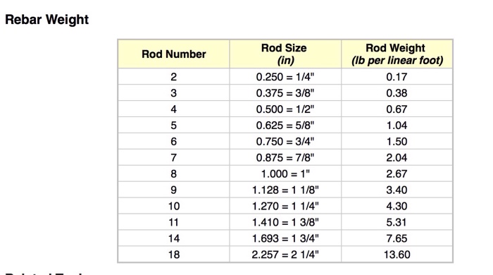 Weight Of Number 3 4 5 6 7 8 9 10 Rebar Per Foot Civil Sir